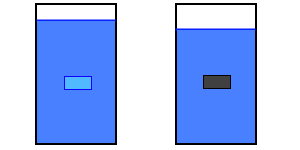 Now the volume of the block of water is the volume of water that is displaced by the submerged object. The object replaced that volume of water. So now we have a way of measuring the buoyant force. We simply find the amount of water that is displaced when an object is submerged, found by the increase in volume of the container. Now if the density of the object is less than the density of the water the object will float.
